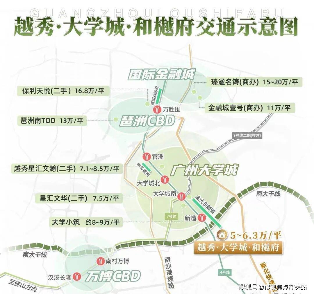 交通是城市的动脉,也是权衡楼盘价值的主要目标。越秀·大学城和樾府正在交通配套上可谓得天独厚。项目距离地铁4号线新制坐很是近,现实步行距离仅正在900米摆布,这是一个很是舒服的步行范畴。4号线做为广州南部的交通大动脉,起了南沙自贸区、大学城、琶洲会展核心、金融城等多个焦点板块。乘坐4号线坐即可达到万博CBD,这里是番禺区的贸易核心,汇聚了万达广场、河汉城等大型购物核心,购一应俱全;5坐即可达到金融城,这里是广州将来的经济引擎,高楼林立,名企云集;继续北上,还可轻松抵达琶洲、珠江新城等广州最富贵的区域。对于正在市核心工做的上班族来说,如许的通勤时间完全能够接管,以至能够说常便利的。
